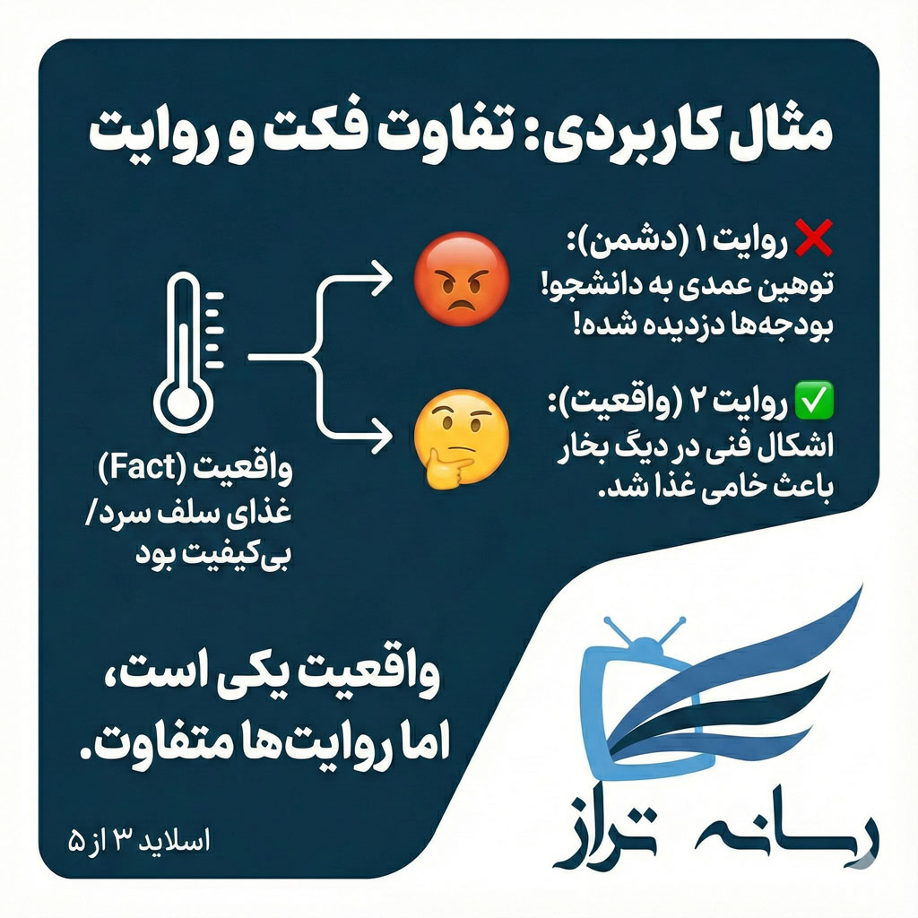 میبینید؟ واقعیت یکی است، اما روایتی که بر ذهن مخاطب مینشیند، تعیین میکند که آیا دانشجو «صبر» میکند یا «شورش» میکند.