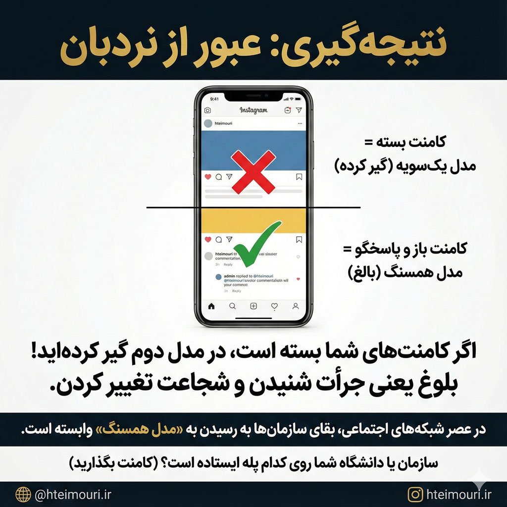 بلوغ یعنی جرأتِ شنیدن و شجاعتِ تغییر کردن. در عصر شبکههای اجتماعی، بقای سازمانها به رسیدن به «مدل همسنگ» وابسته است.